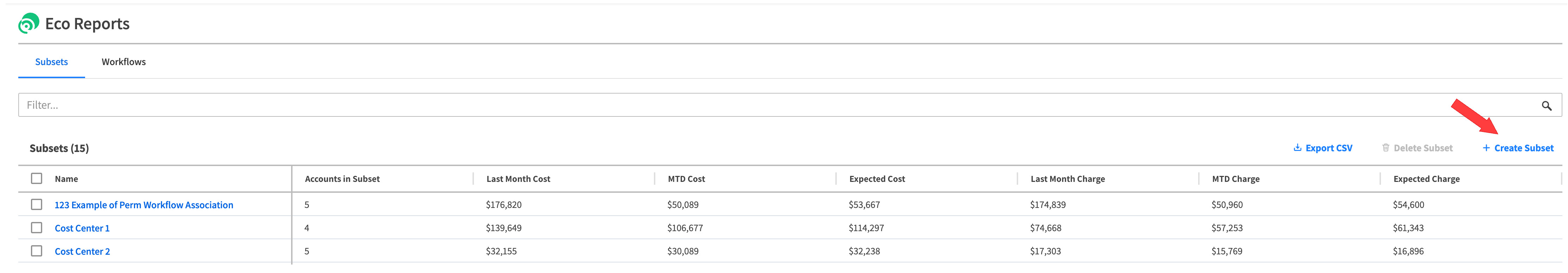 In the left sidebar, go to Eco/Reports and then click Create new subset.