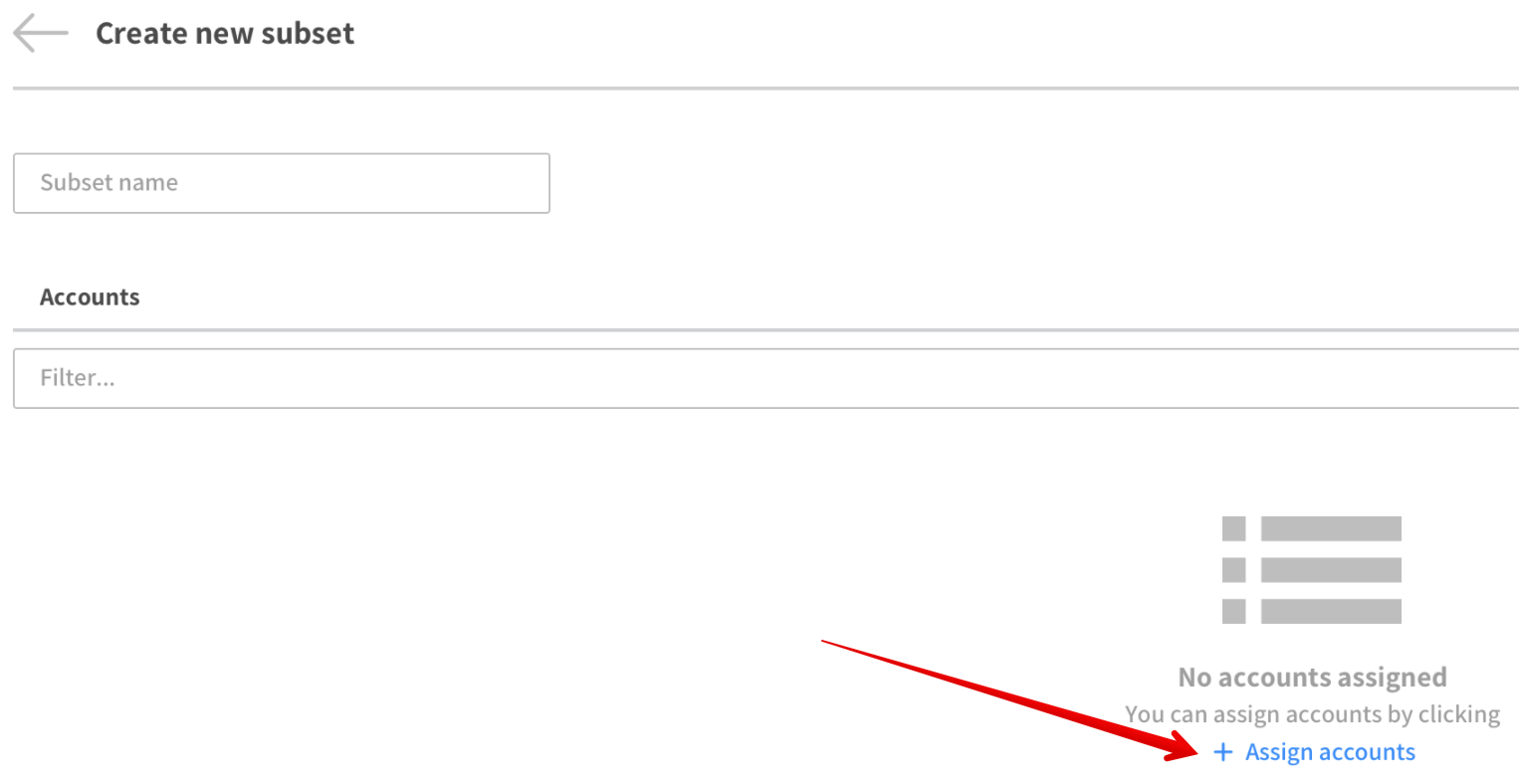 A subset is a group of accounts within an organization that are assigned to the same logical unit. Within your organization, you can create subsets of accounts for the purpose of analyzing data of several related accounts together and creating reports relevant to your organization.