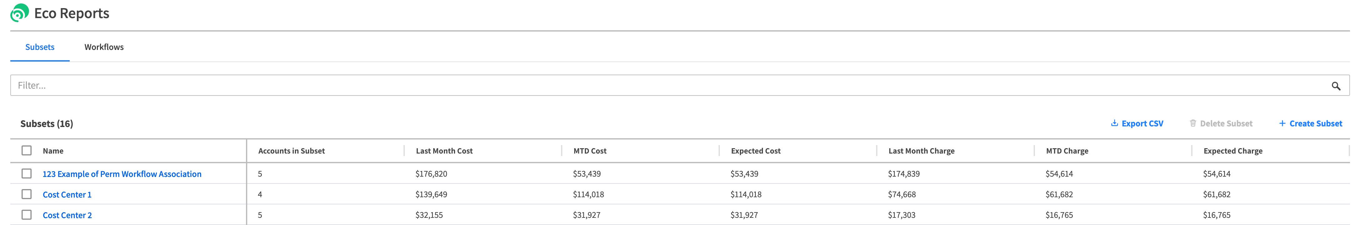 - Expected monthly cost: Estimated amount you will owe the cloud provider for this subset at the end of the current month.