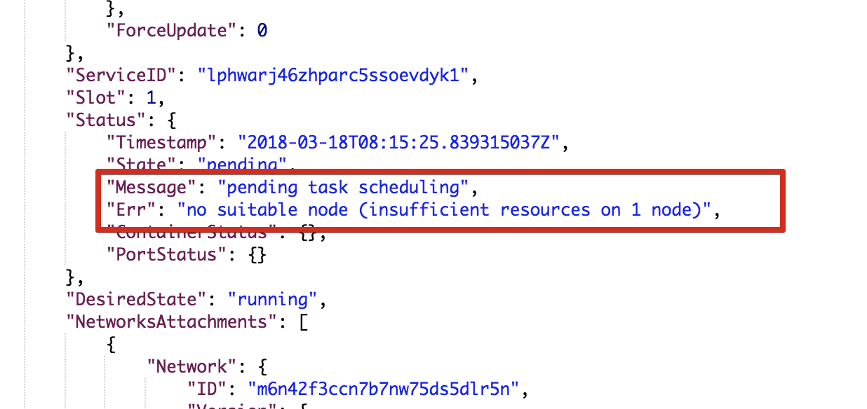 When a task is launched in Docker Swarm cluster, The manager node tries to find free capacity for the task to run. In some cases, there aren't enough resources to meet the task's demands.
