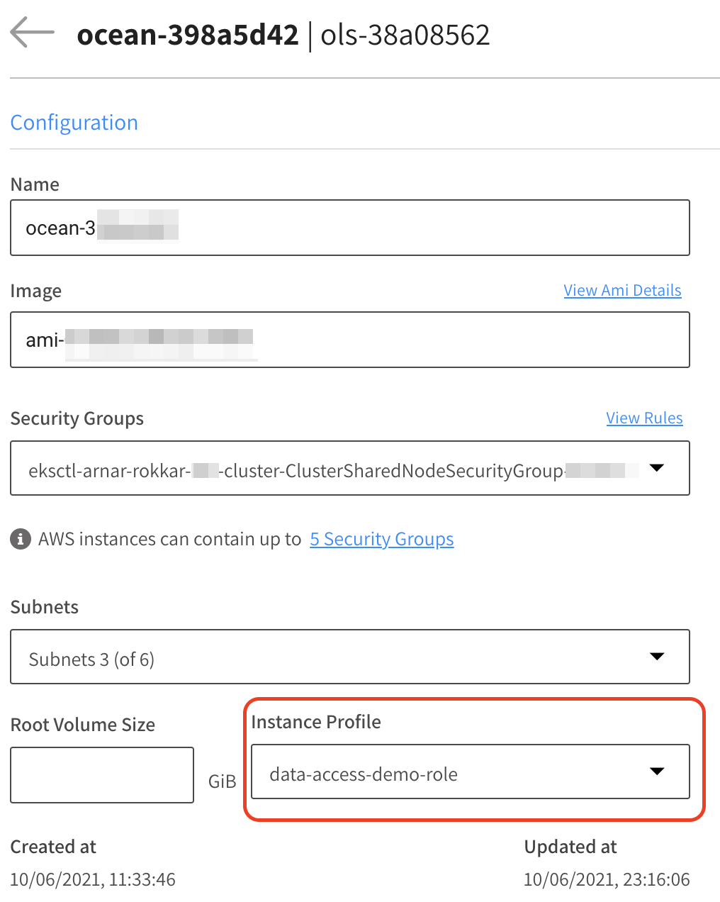 - Configure the Ocean Virtual Node Group of your Ocean Spark cluster to use the IAM role.