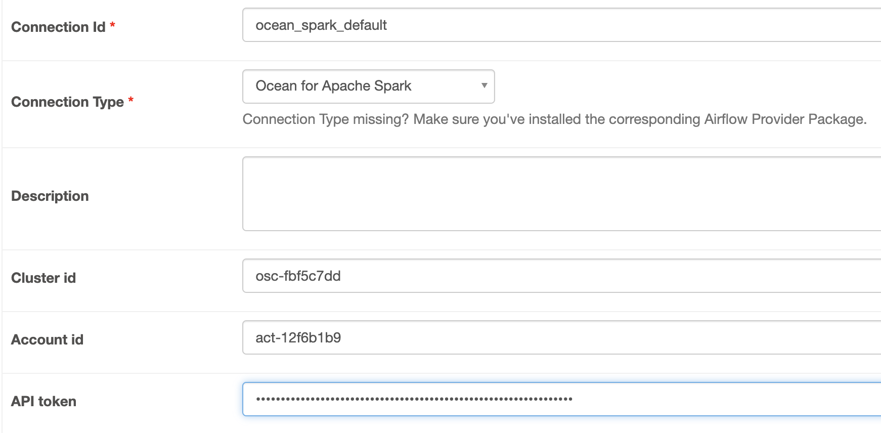 --conn-password <your Spot API token> ocean_spark_default