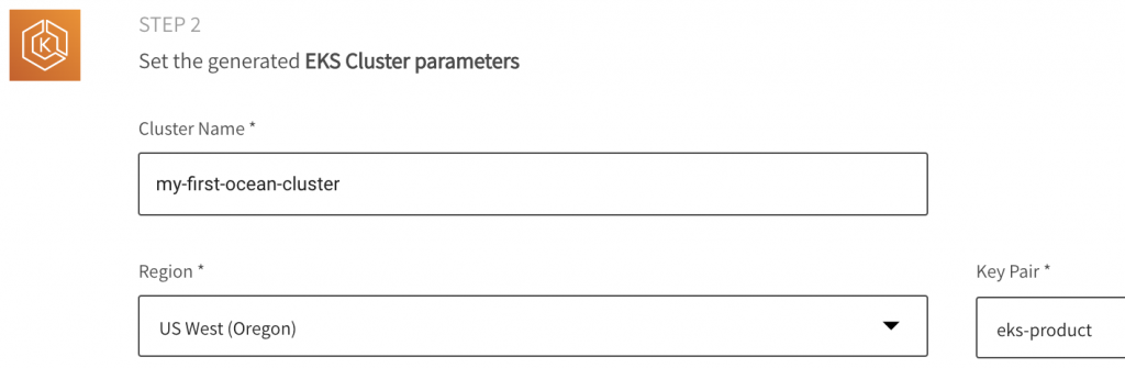- Connect your workstation to the EKS cluster by copying the command shown in Step 4 of the Create page and running it in your command-line interface. Note that the command must include the Ocean Cluster Name that you entered previously.