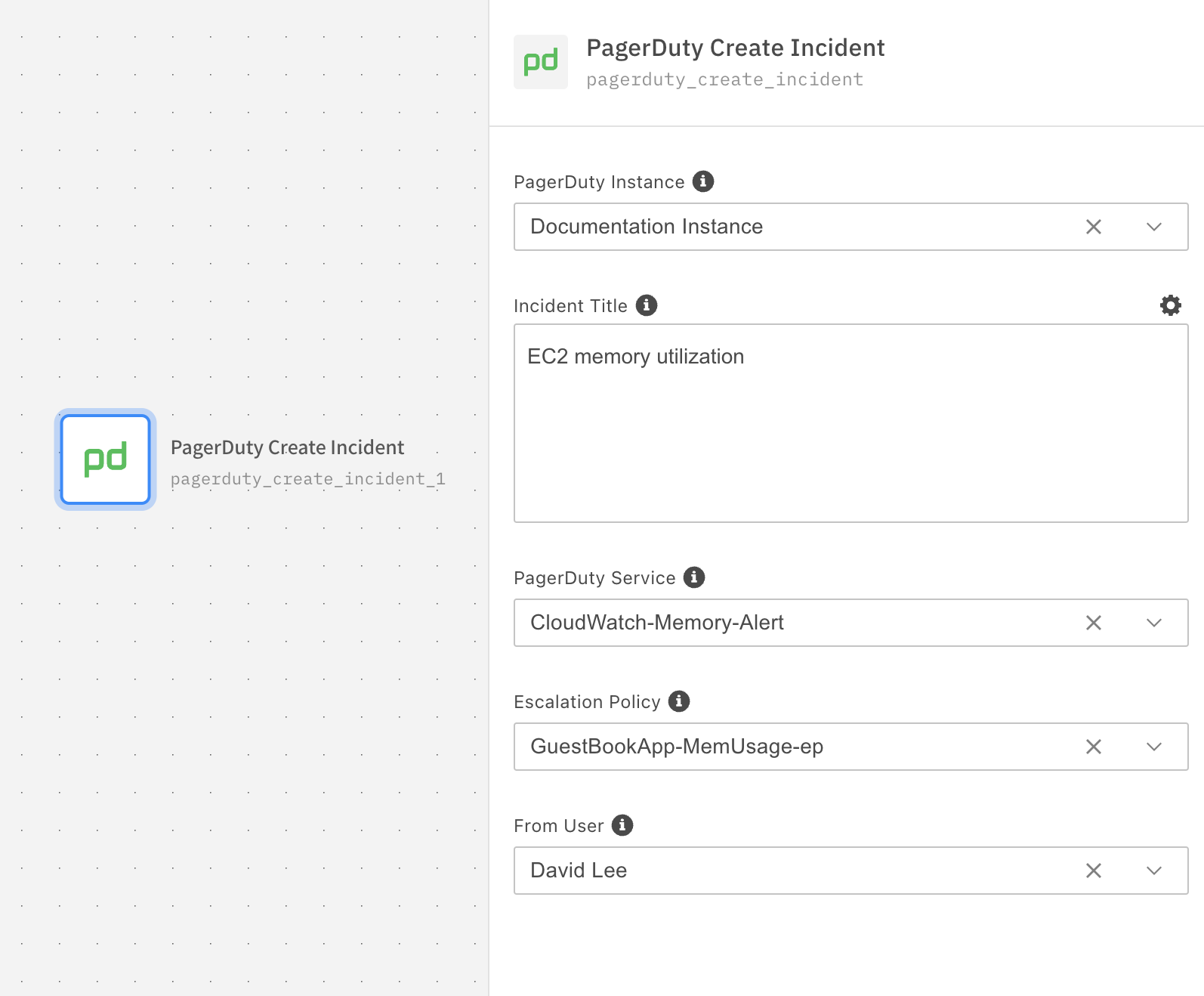 - Select a user to create the PagerDuty incident.