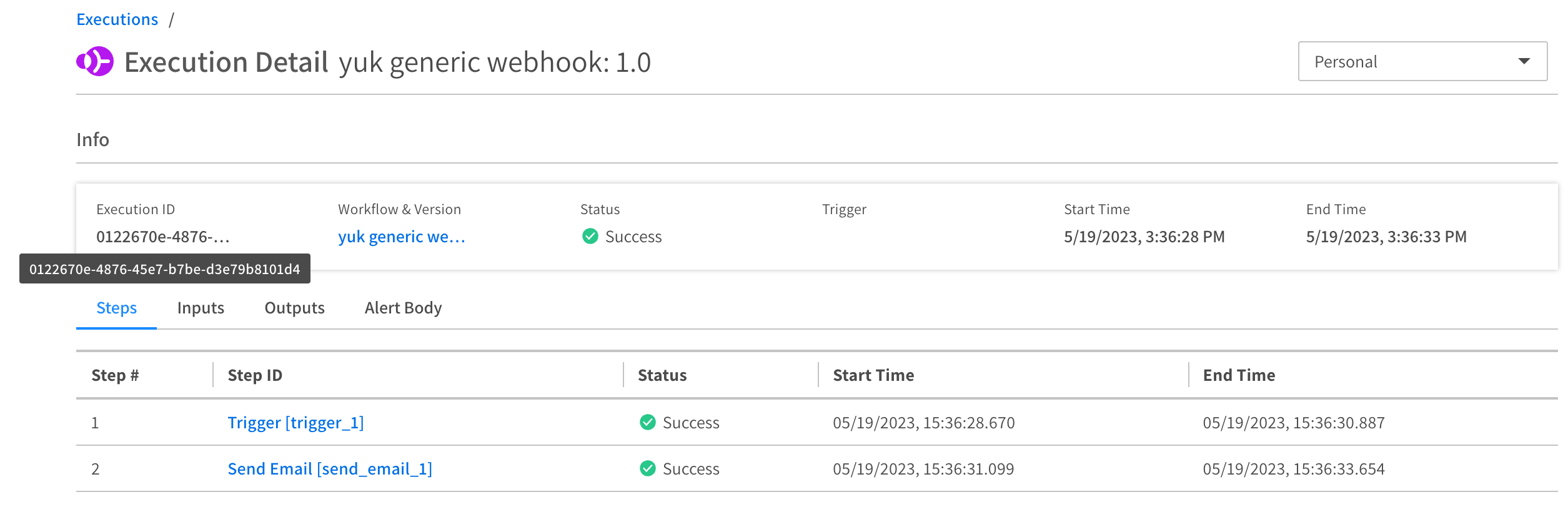 You can find the workflow execution listed in the Spot Connect Executions page.