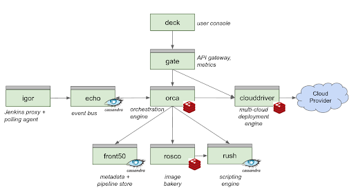 Spinnaker has a modular architecture, and each Spinnaker service has its dedicated purpose.